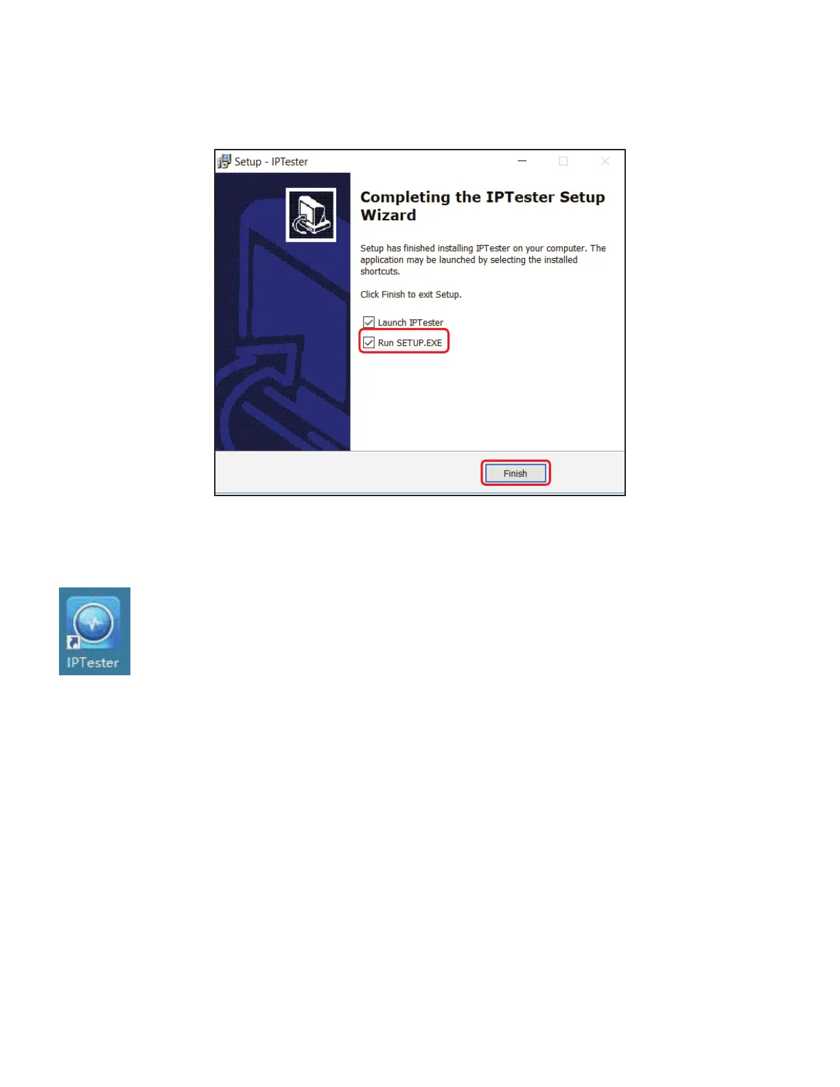 Select Run SETUP.EXE, then select Launch IPTester if desired. Click Finish.