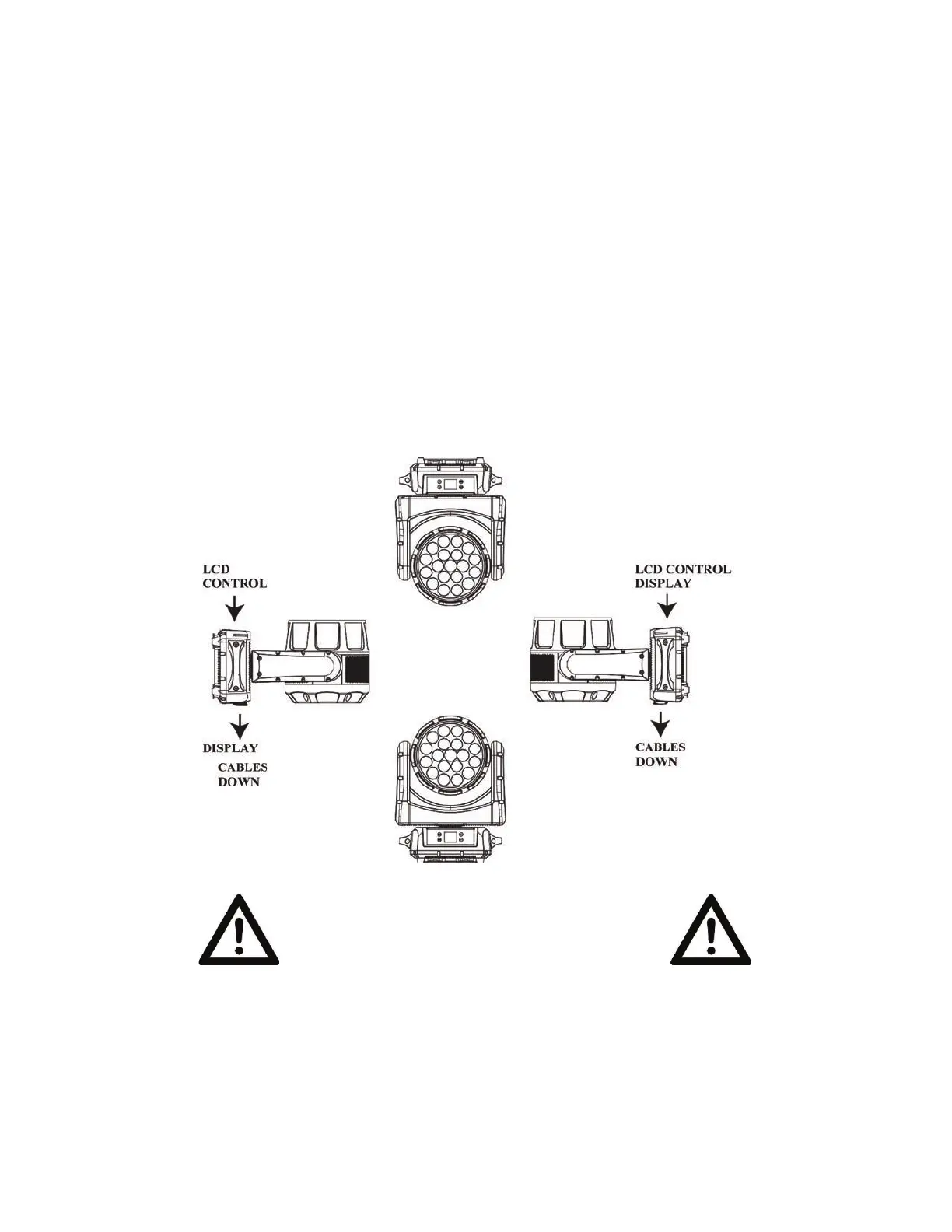 mounted sideways on trussing, or set on a flat level surface. Always use and install a safety cable as