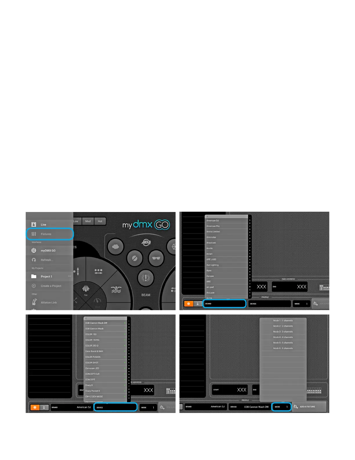 Some xtures have dierent operation modes that take up dierent amounts of channels.