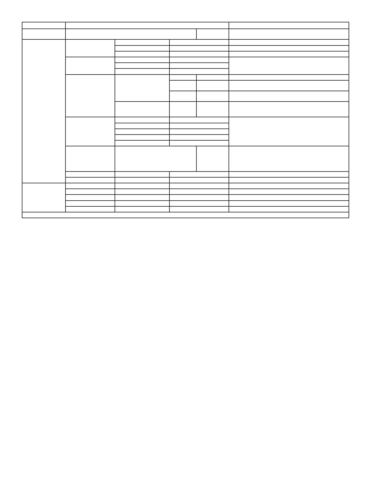 MAIN MENU OPTIONS / VALUES (Default Settings in BOLD) DESCRIPTION