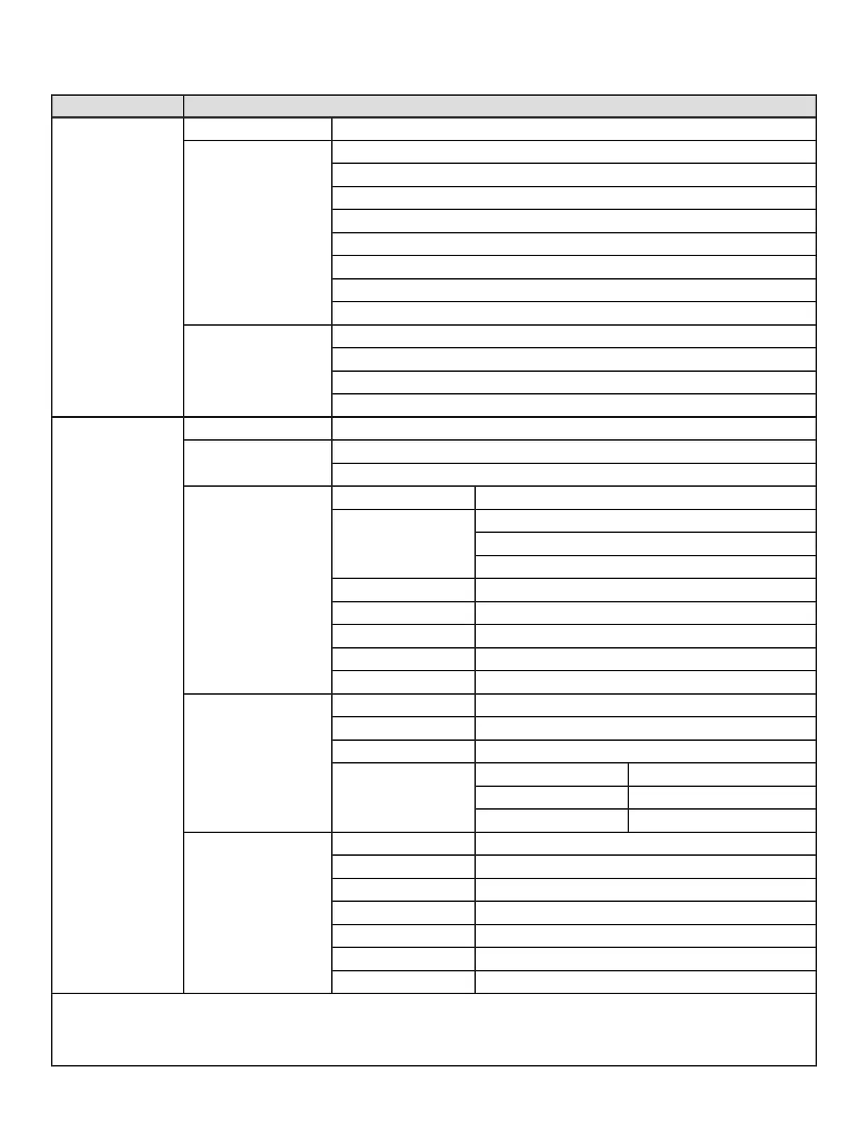 MAIN MENU OPTIONS / VALUES (Default Settings in BOLD)