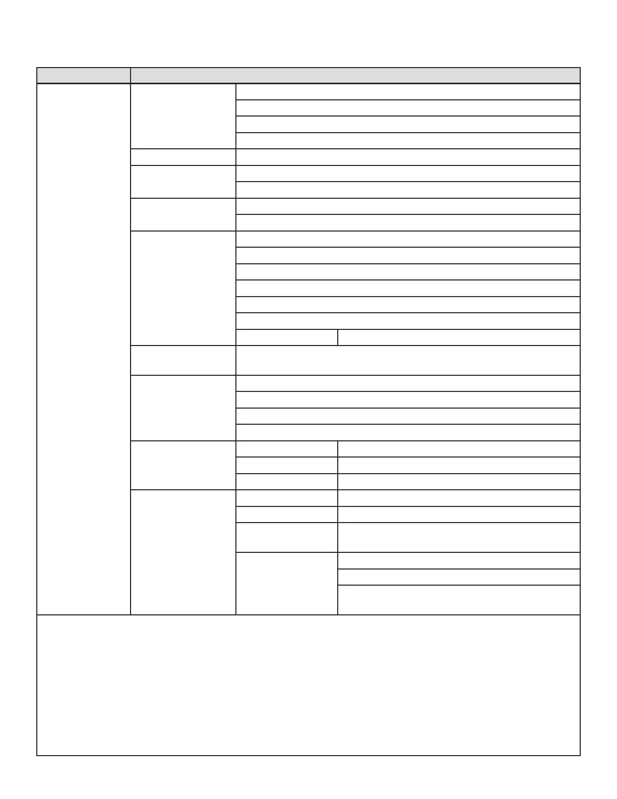 MAIN MENU OPTIONS / VALUES (Default Settings in BOLD)