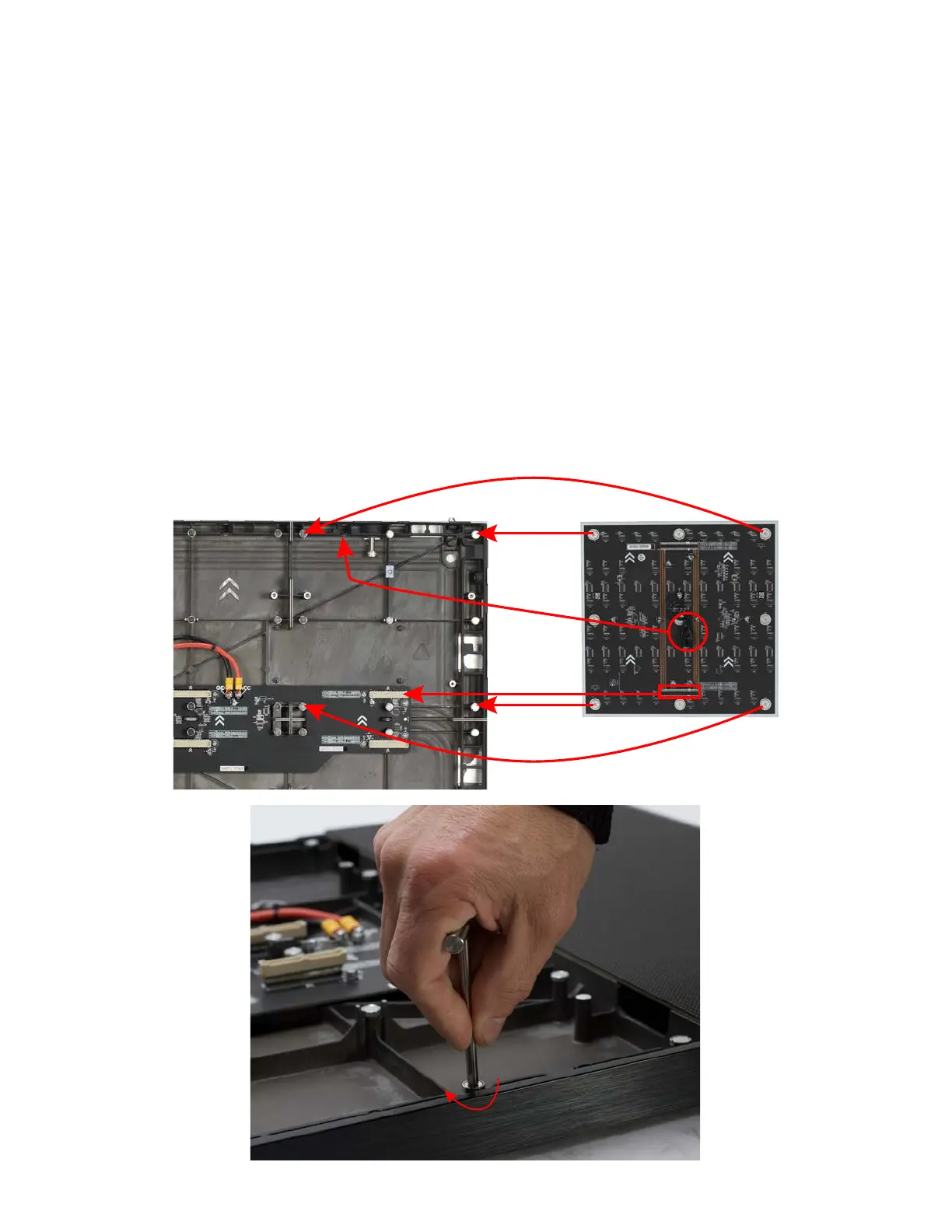 cable points are located along the upper edge of the video panel for the top row of LED module,