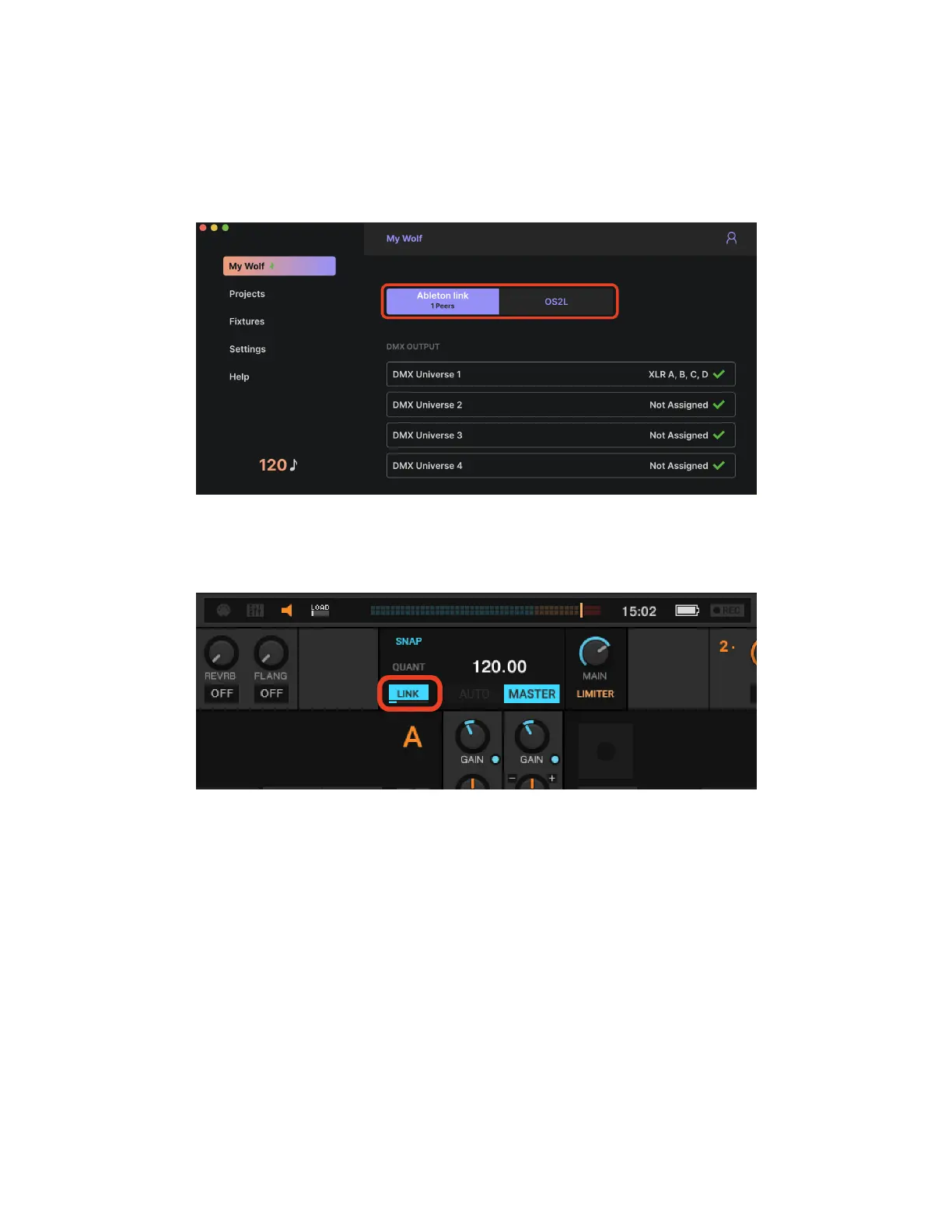 For Ableton Link, open your DJ software and nd the LINK button. The image below shows Native