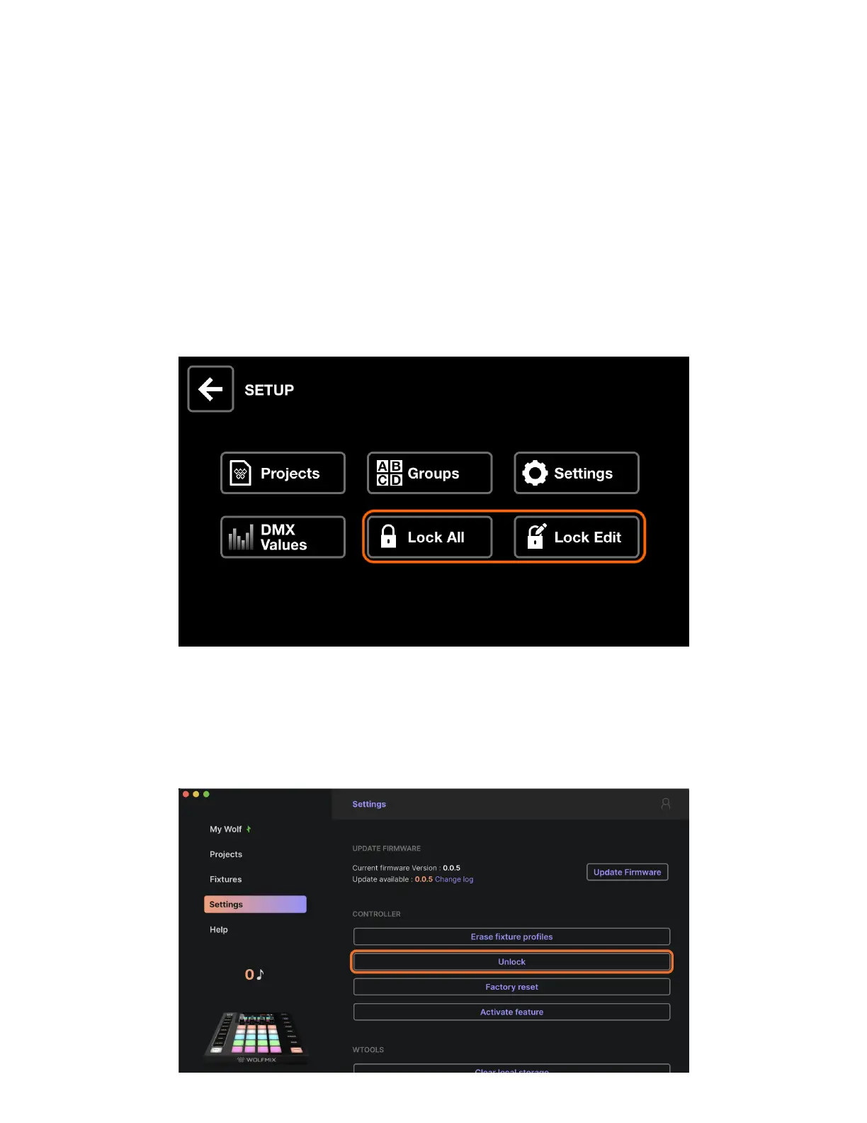 setup will also be locked. This mode is ideal when you want to allow the user to play with the lights
