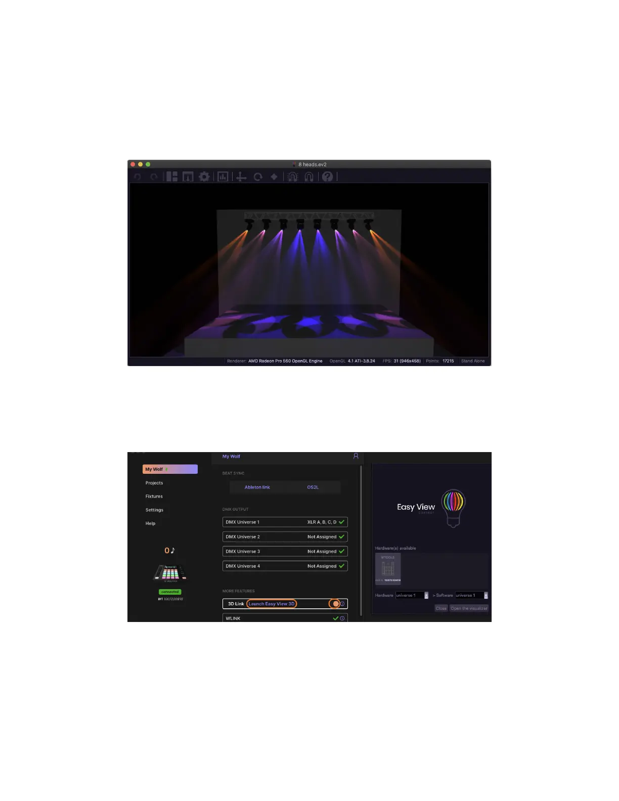 send DMX data from WMX1 MK2 to Easy View 2, the 3D Link add-on is required. This can be purchased