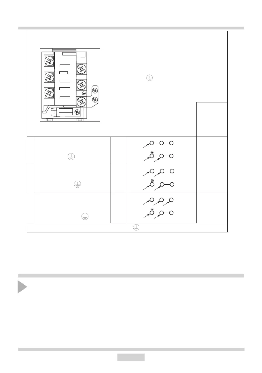 L1=R, L2=S, L3=T; N - klem van de nulleider; - klem van de aardingsleiding