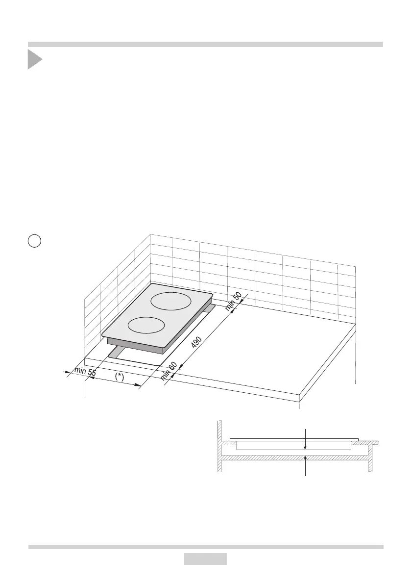 ● Ensure minimum clearance of 25 mm below the hob to allow proper air circulation and