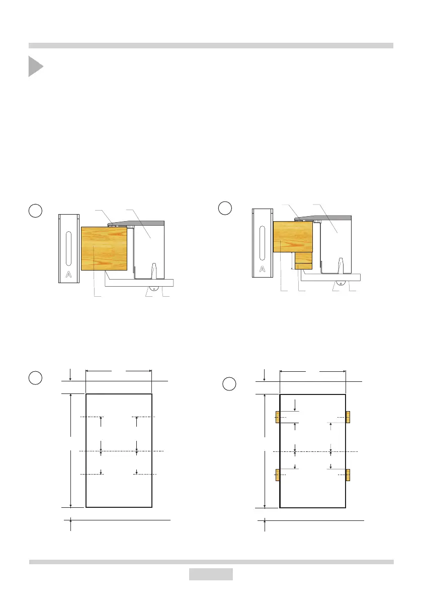 ● Ist die Küchenplatte 48 mm stark, müssen vier Halterungen Typ “A” bei der Montage ver-