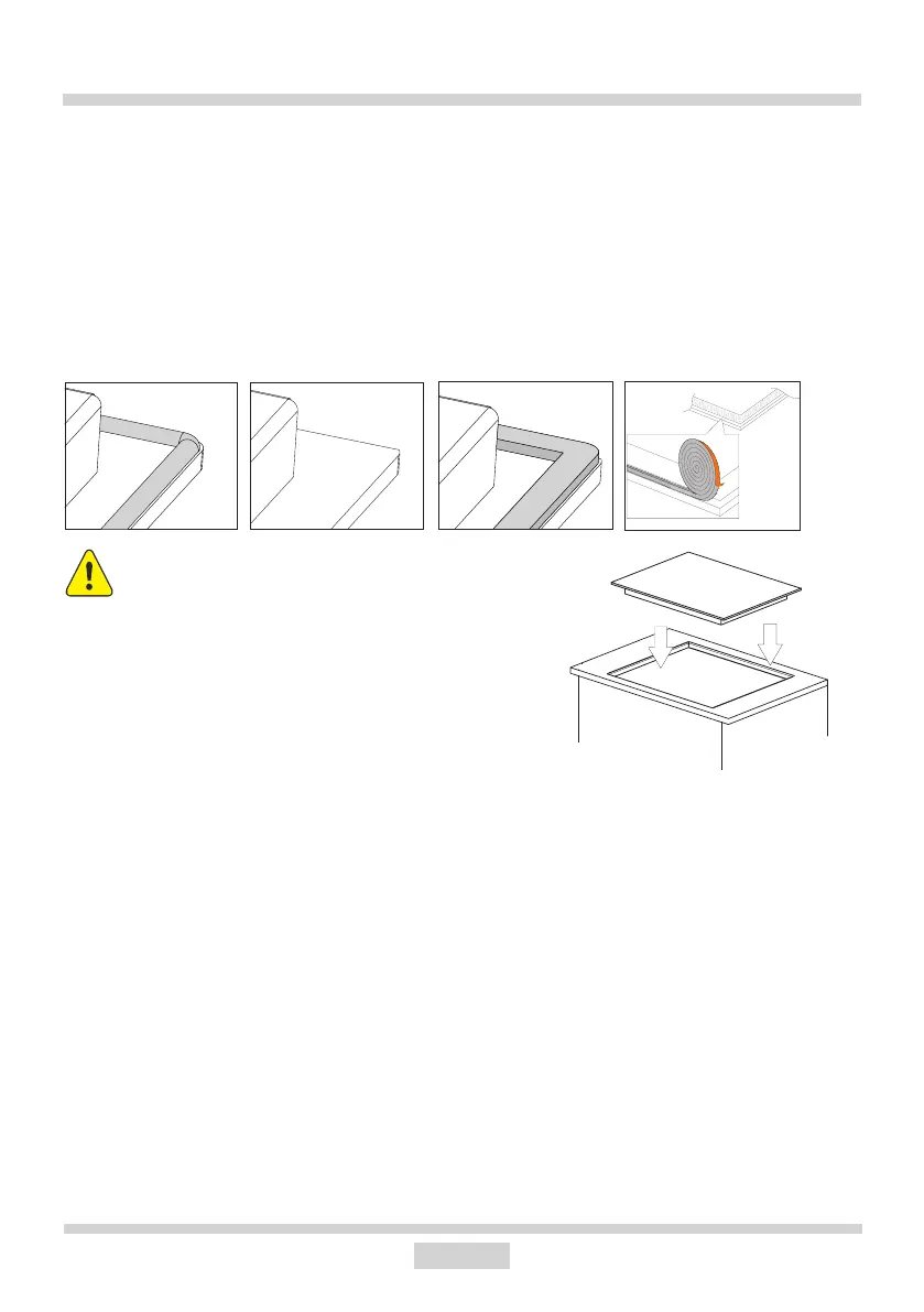 Vor der Installation des Kochfelds im Ausschnitt der Arbeitsplatte ist die Dichtung