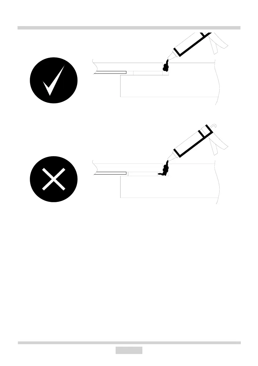 • Das Dichtband sollte so an der Unterseite des Kochfelds angebracht werden, dass kein Sili-