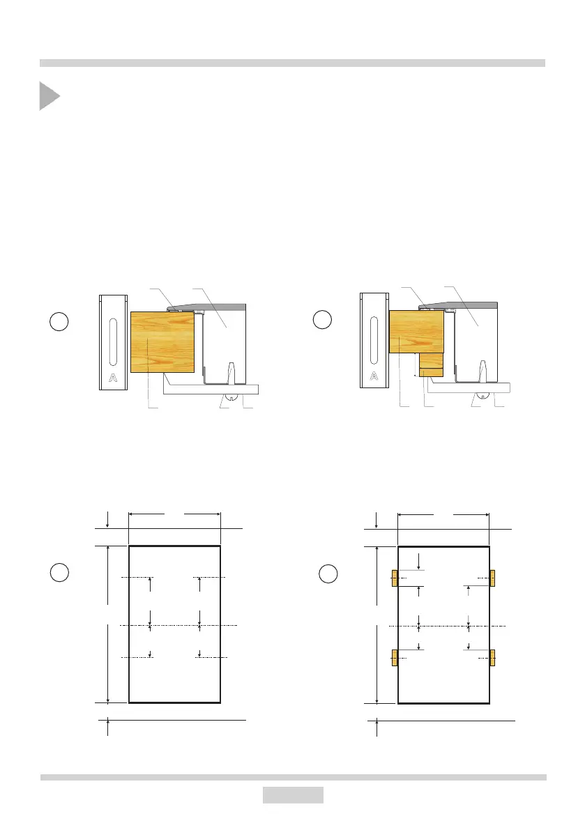 ● Si le plateau a 48 mm d’épaisseur, pour la fixation de la plaque utiliser 4 crochets « A