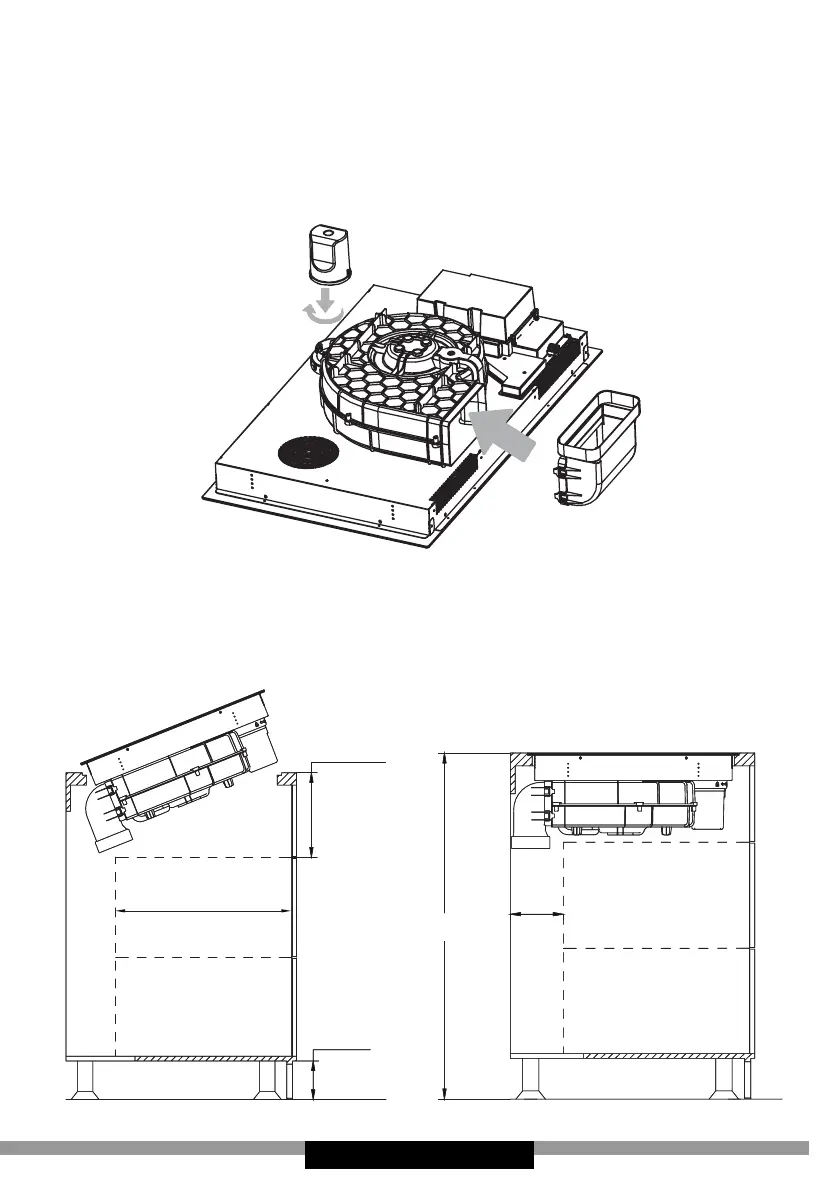 Place the downdraft extractor on the worktop and align it properly.