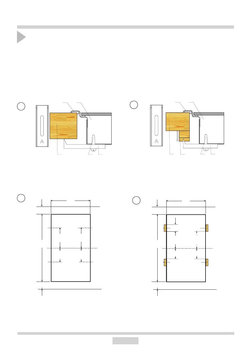 ● Use four “A” brackets for 48 mm thick worktops. Fit the hob into worktop opening as shown