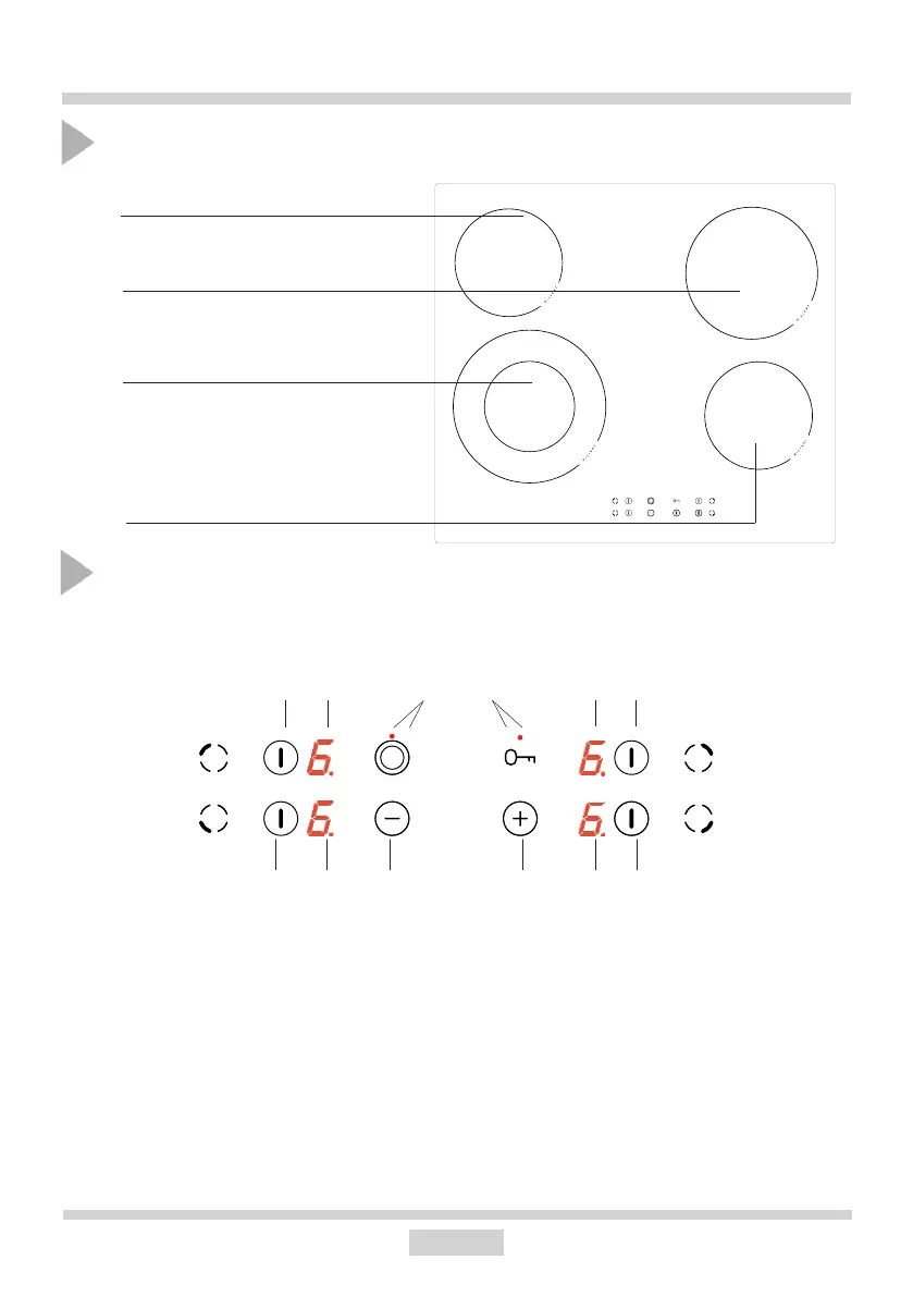 1. Tiptoets aan/uit/activering kookzone