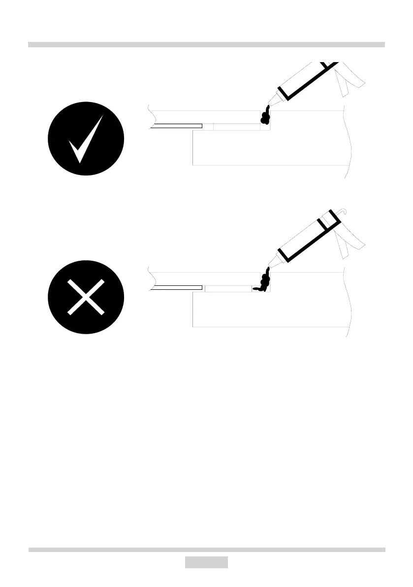 de afwerkingssilicone onder de kookplaat terechtkomt. Als het nodig is om het apparaat te