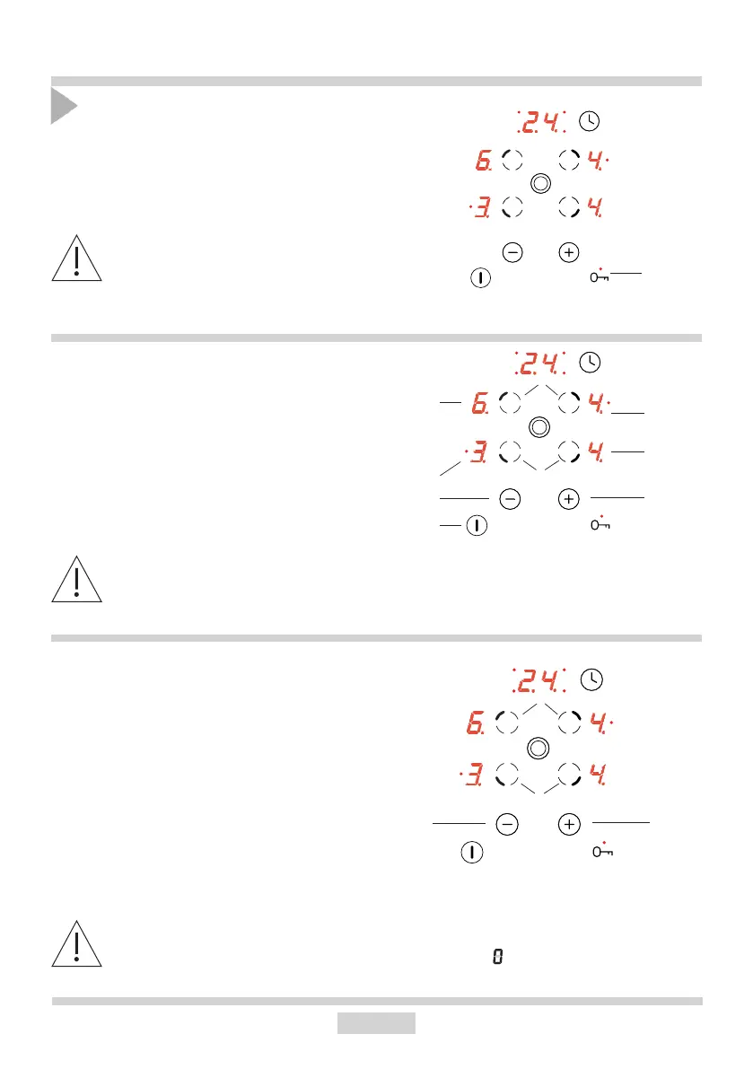 A cooking zone is active when corresponding digit “ ” is blinking. This indicates