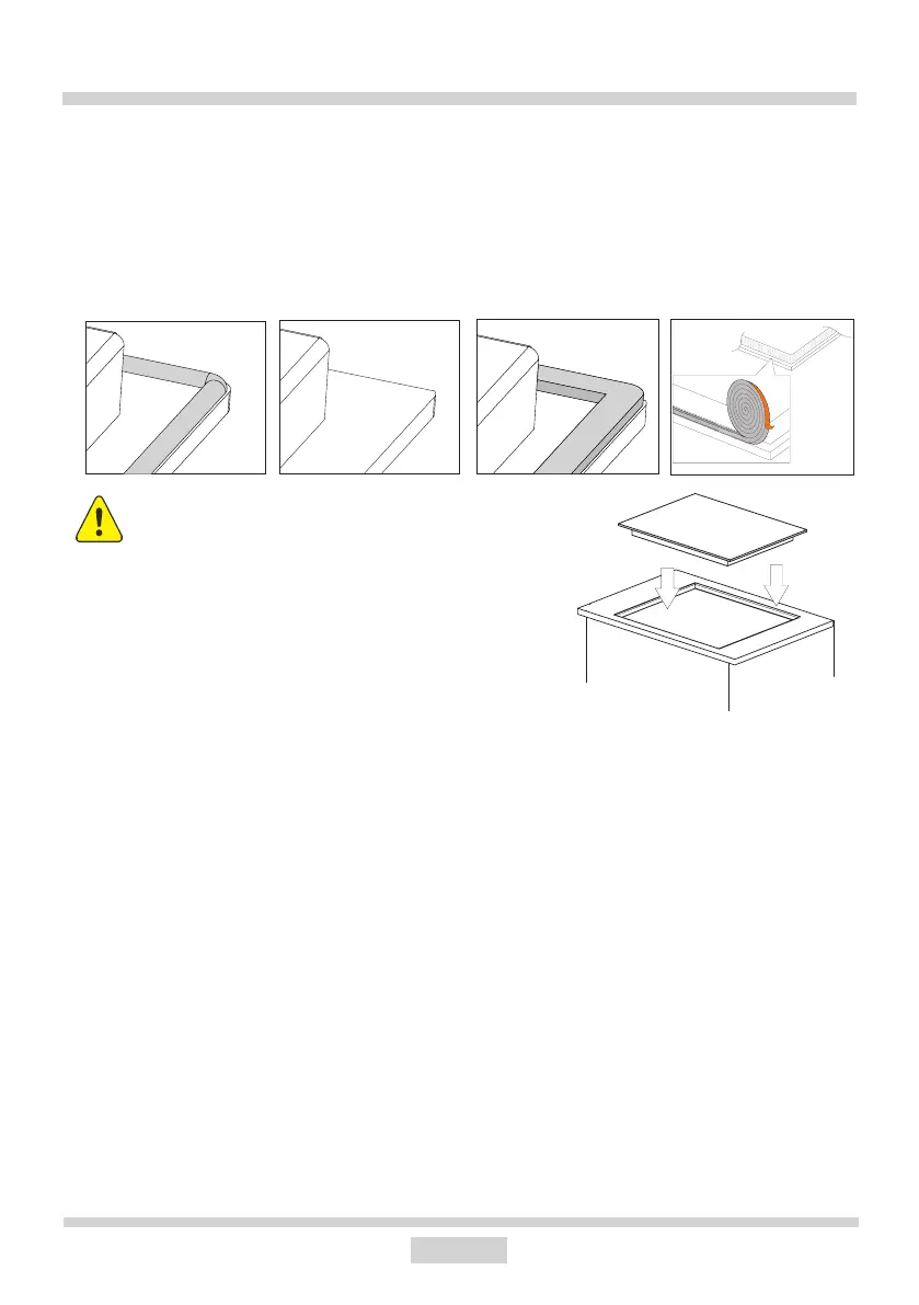Before installing the hob in the cut-out worktop, the gasket is to be attached to the back