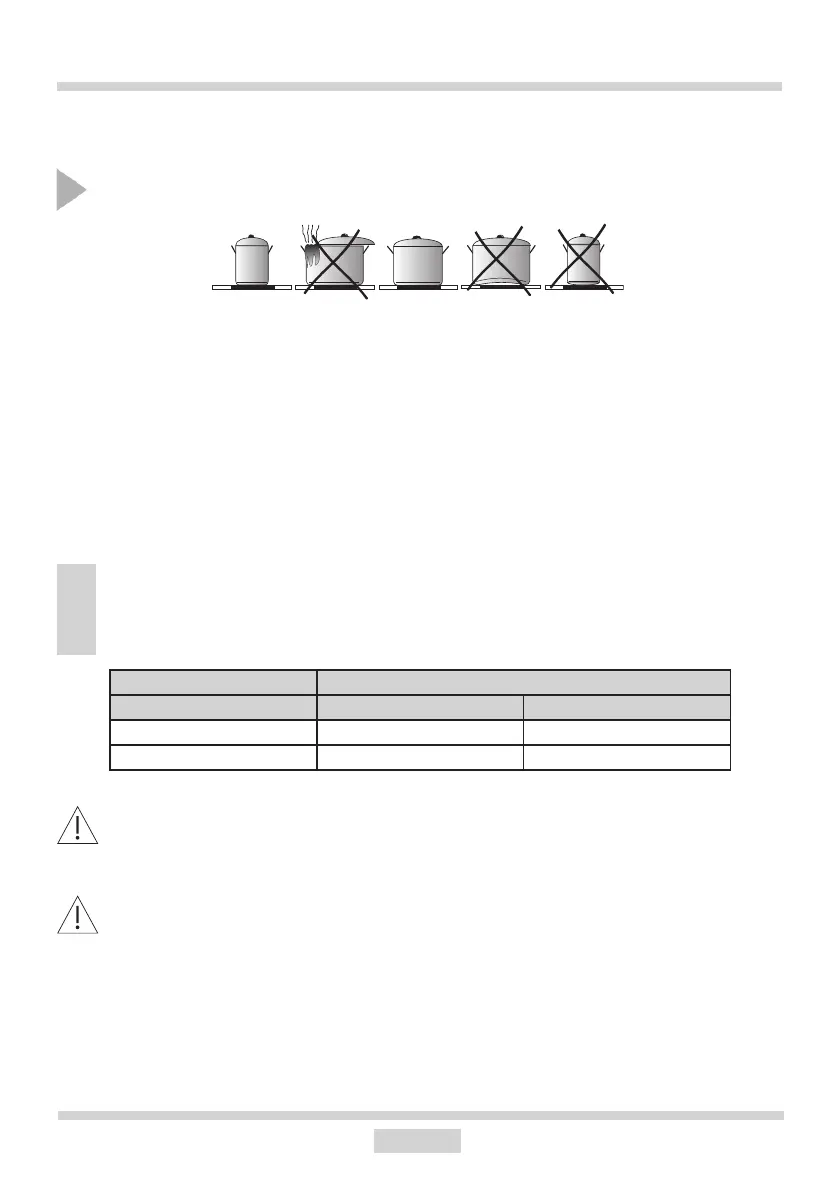 ● Make sure that cookware base is dry: when lling a pot or when using a pot taken out of