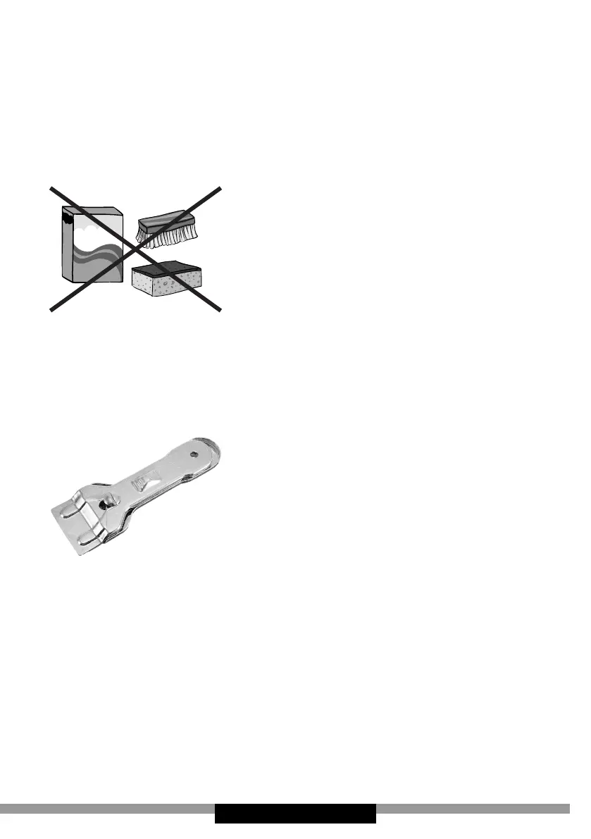 leftovers o the hot cooking zone using a sharp scraper. Once the bulk of