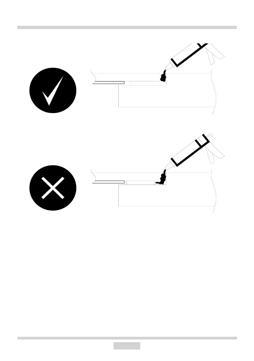 • The gasket applied to the bottom of the hob glass ange should prevent silicone from