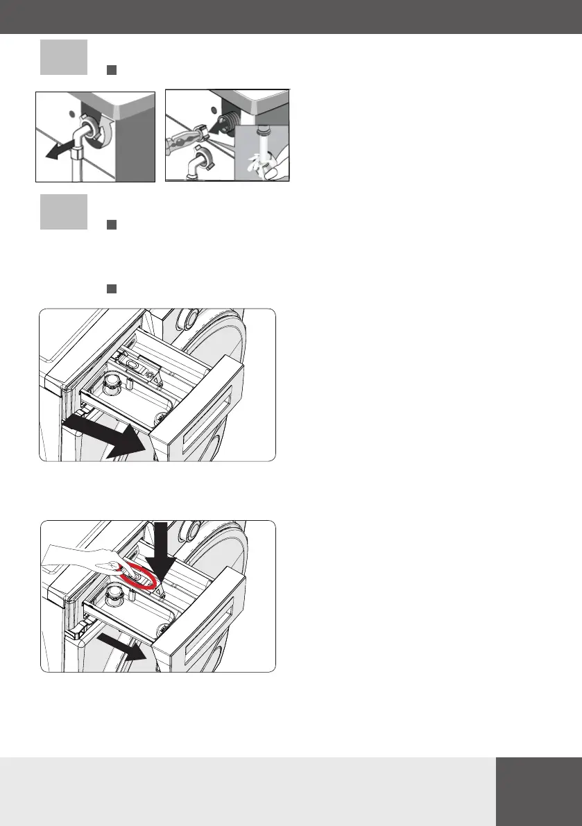 Druk op het punt in de binnenkant van het wasmiddellaatje (zie afbeelding) en trek