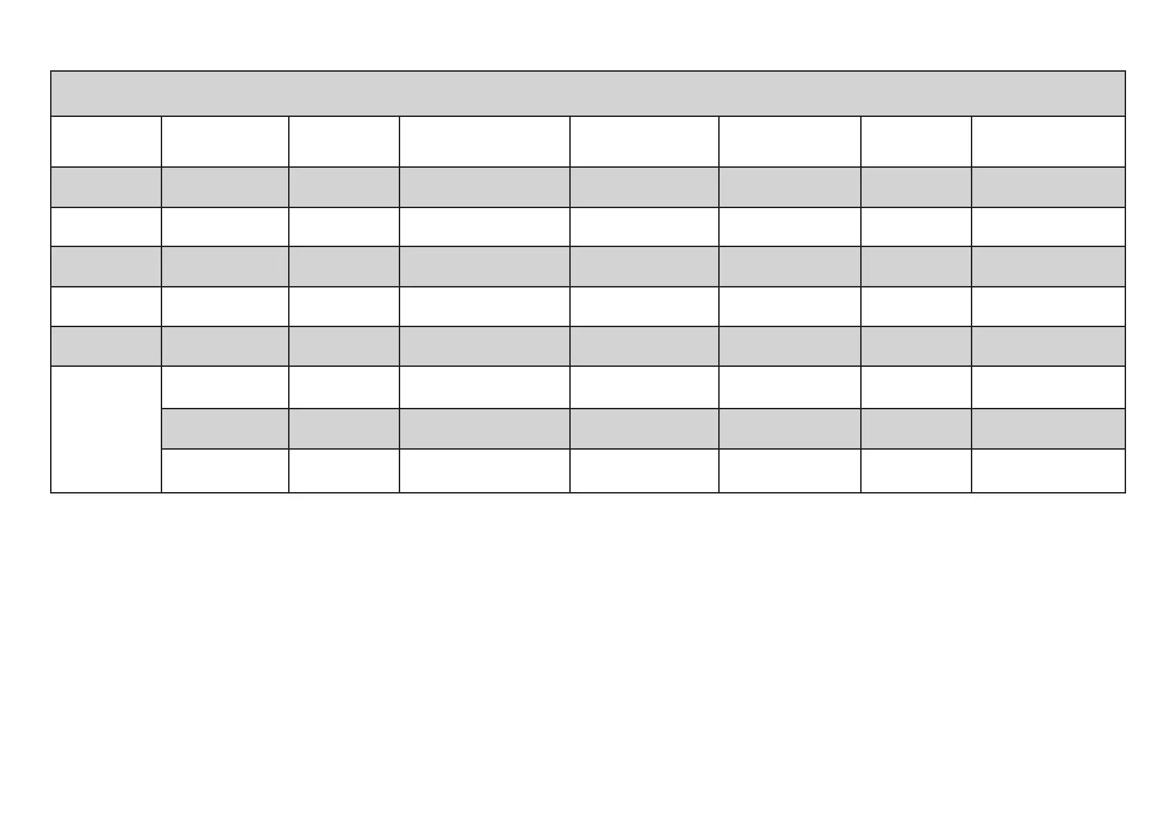 WASHING PROGRAMMES TABLE