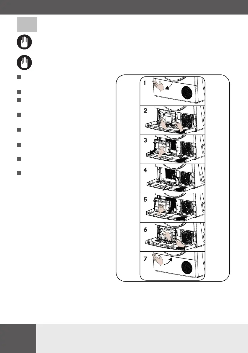 In case of foreign objects fall inside below the lter compartment, remove the lter, open the heat