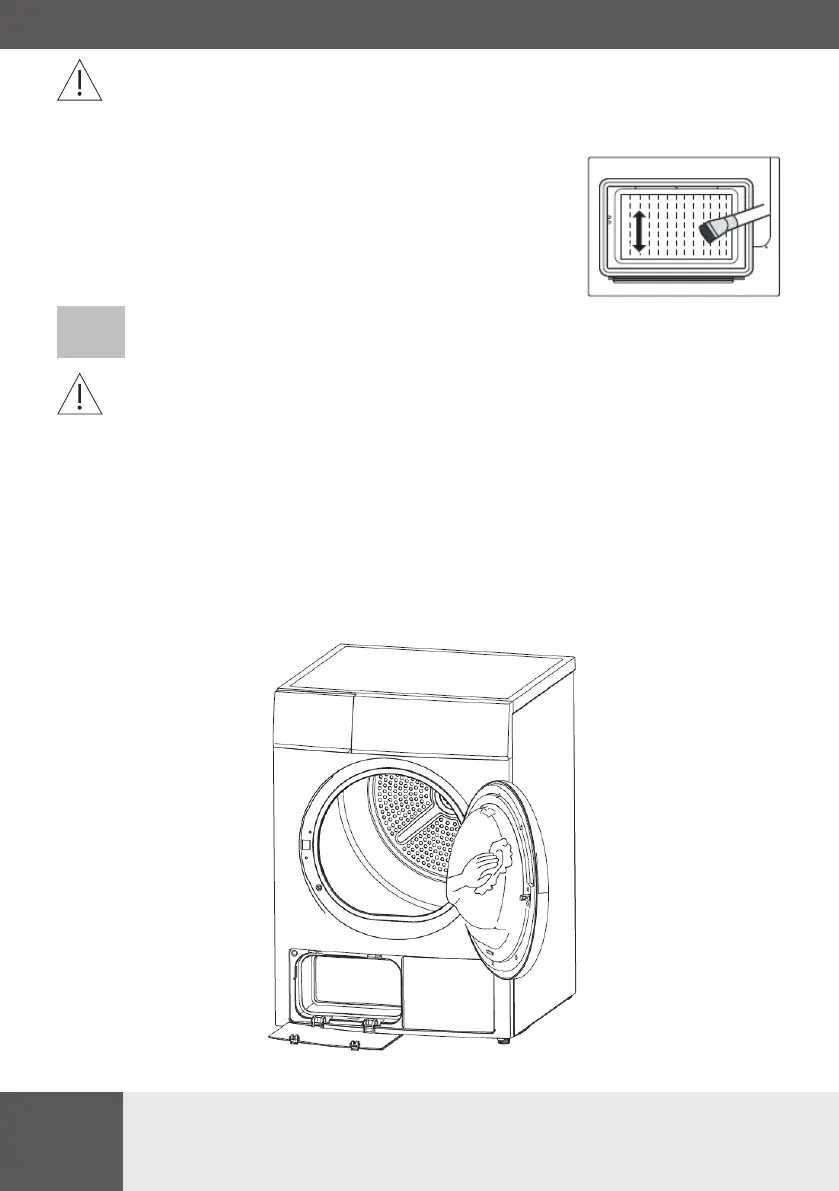 • Remove all the lters, clean the seals and air ducts. Before using the dryer wipe all the
