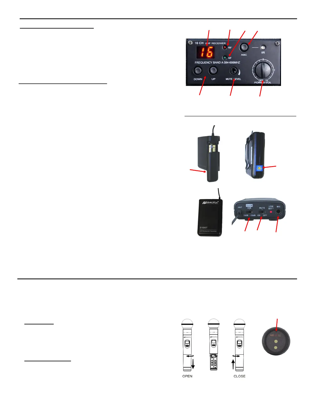 • The transmitter bodypack is operated by 1 - "AA" 1.5 Volt alkaline bat-
