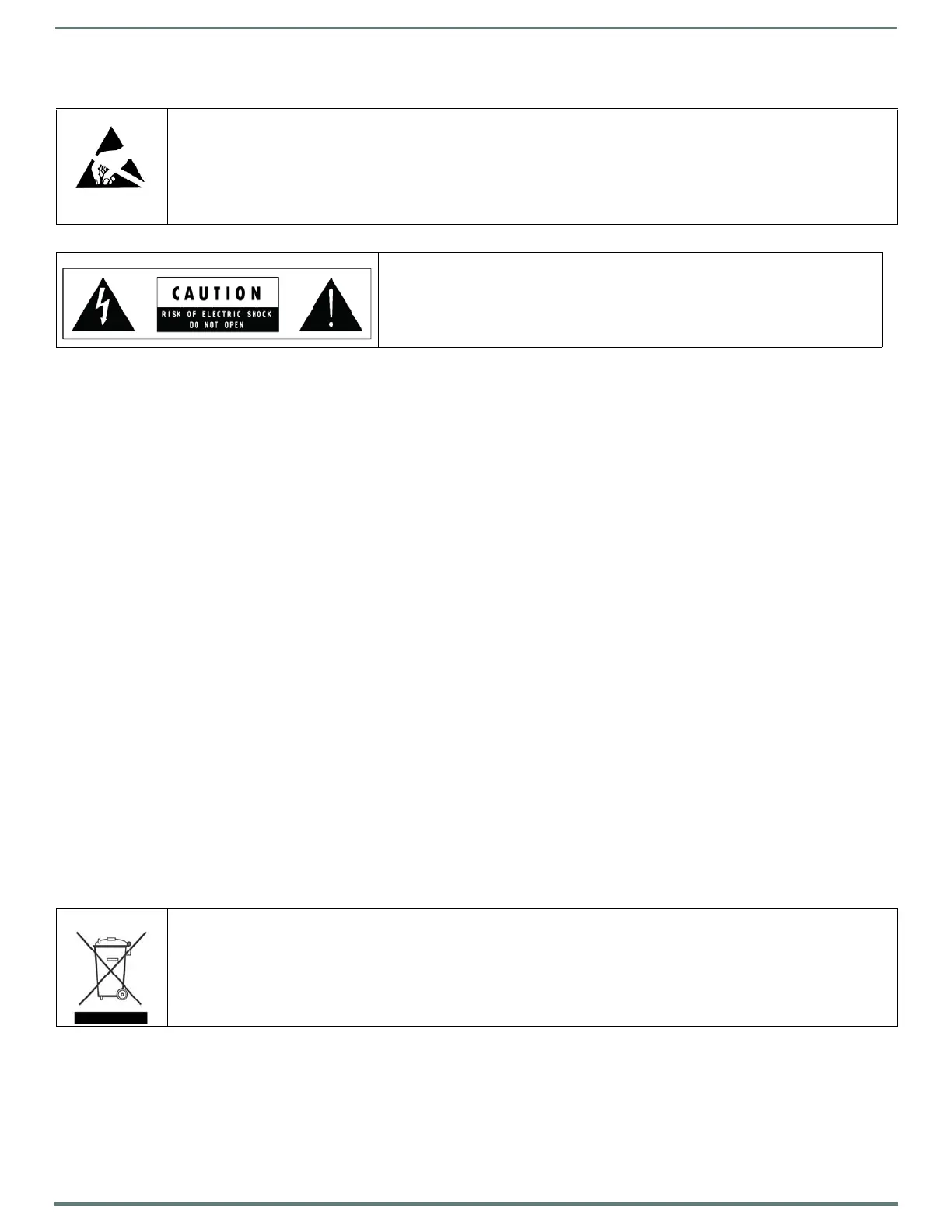 Anyone performing field maintenance on AMX equipment should use an appropriate ESD field service kit complete with at