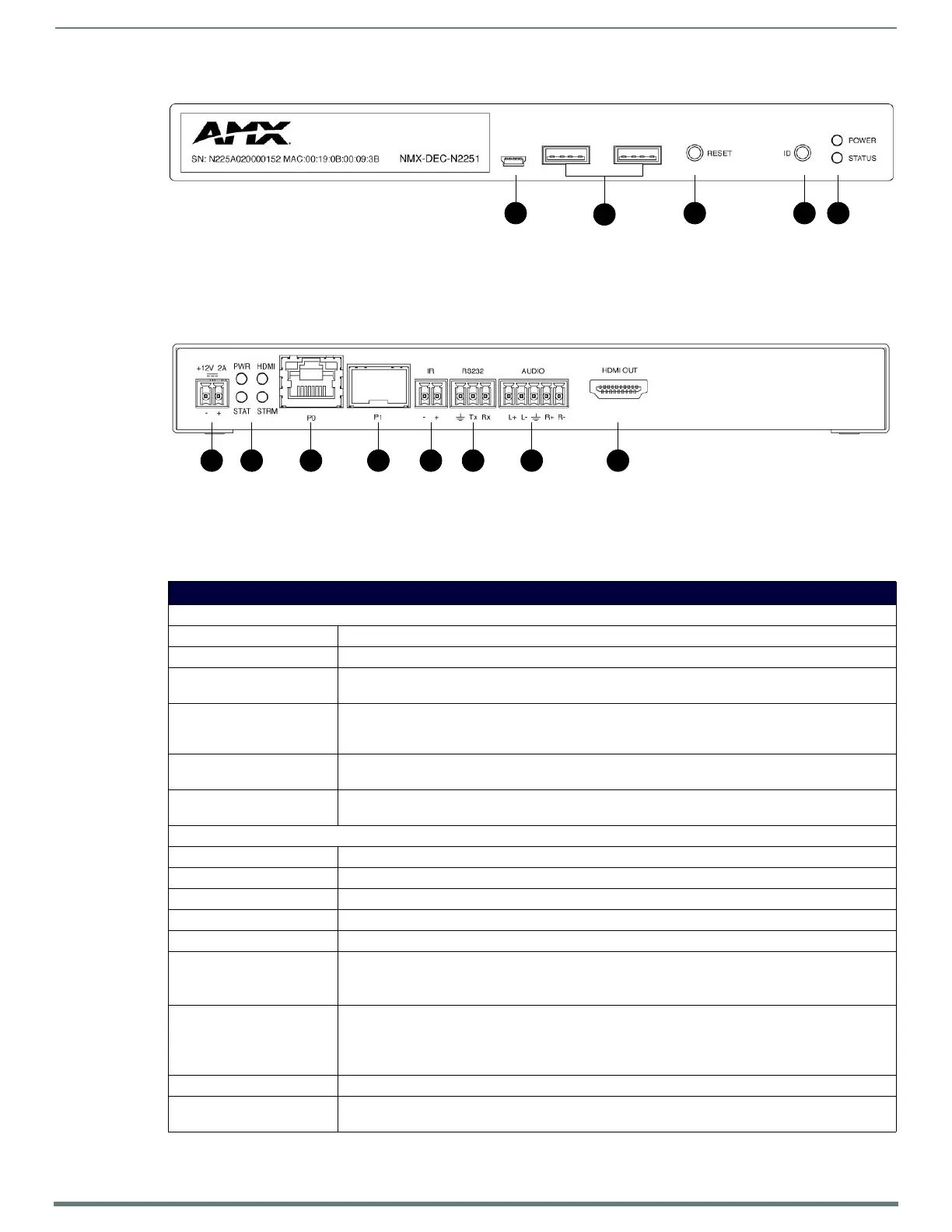 Bekijk gratis de handleiding van AMX NMX-DEC-N2251, stel vragen en lees de antwoorden op veelvoorkomende problemen, of gebruik onze assistent om sneller informatie in de handleiding te vinden of uitleg te krijgen over specifieke functies.