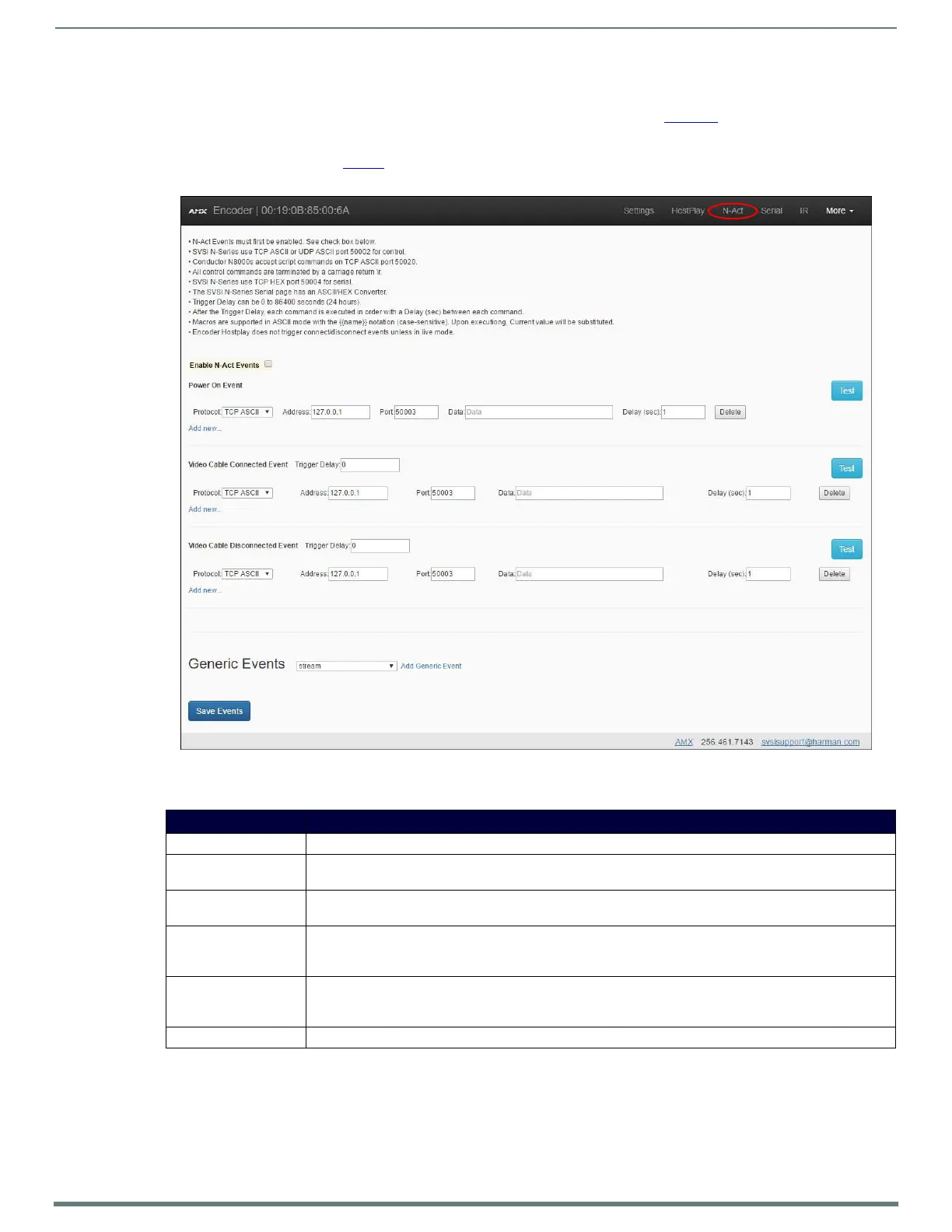 Create/delete/test events to be performed when the Encoder is connected to a video source. The Trigger Delay