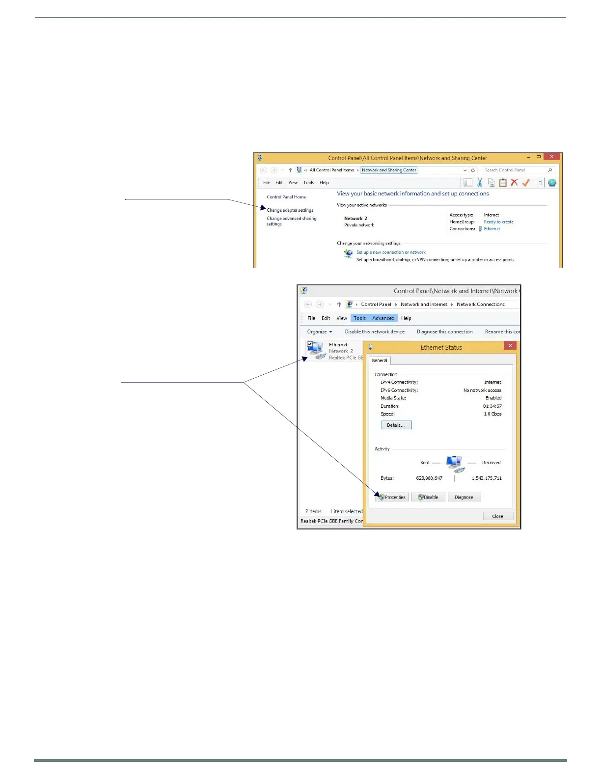 1. From the Start menu, select Control Panel > Network and Sharing Center.