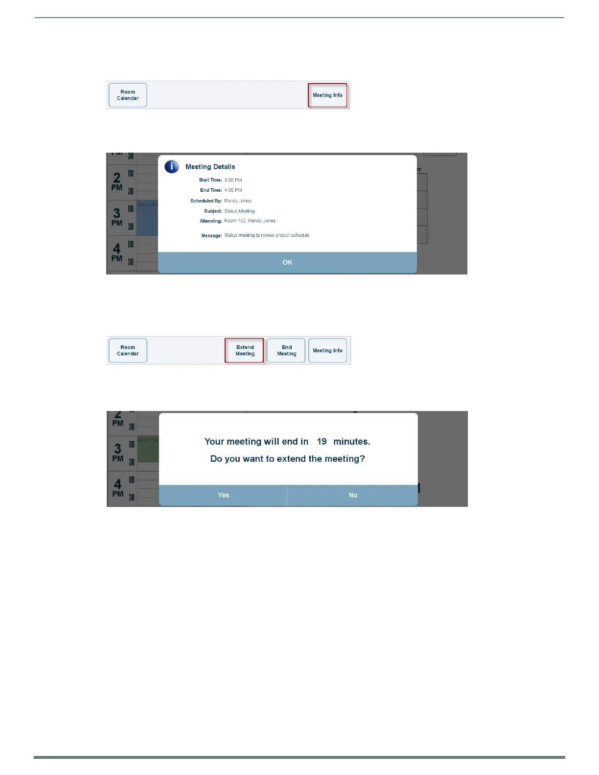 The Extend Meeting button is displayed on internal panels, when a meeting is in progress (FIG. 24):