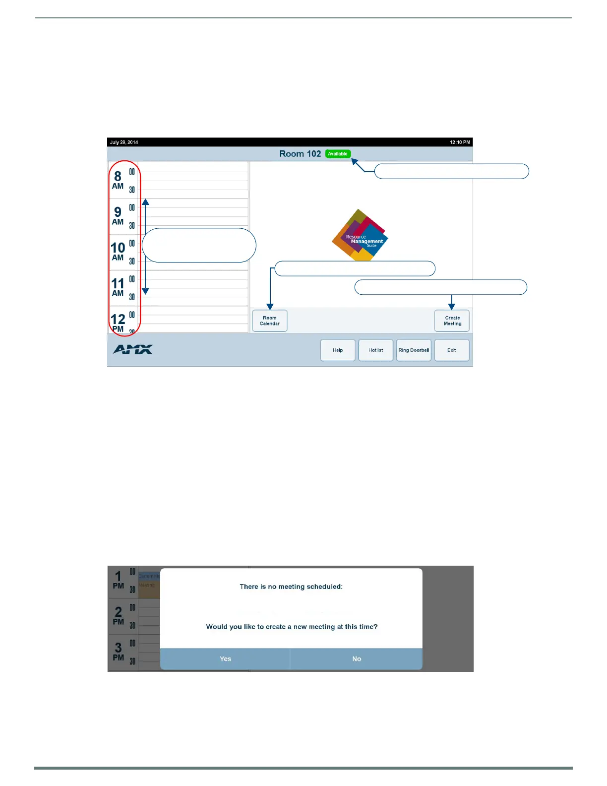 This section describes using the RMS Enterprise G5 touch panel pages for a scheduling plug-in. Press the Scheduling button on the