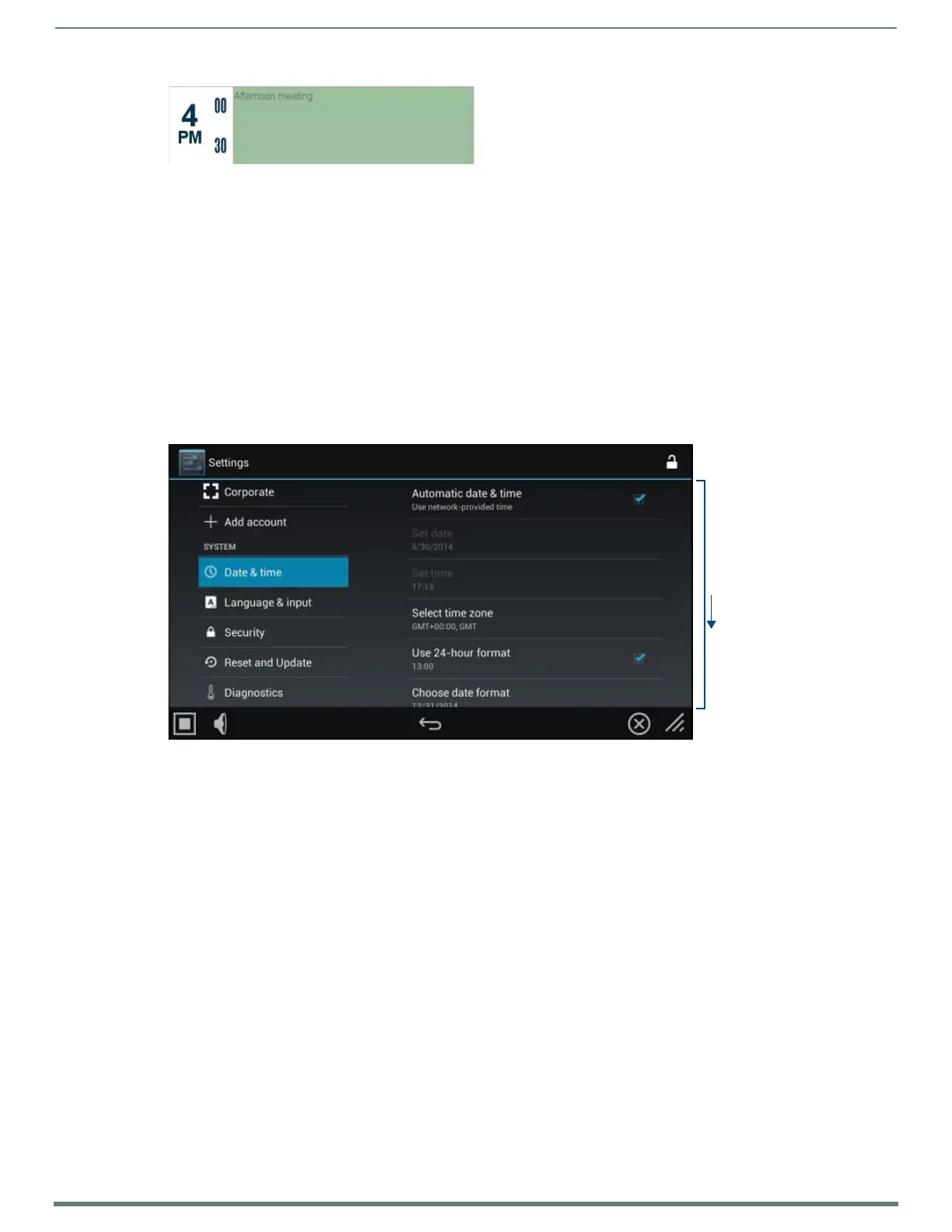 setting and adjusting of time and date information on the Modero X Series G5 touch panel.