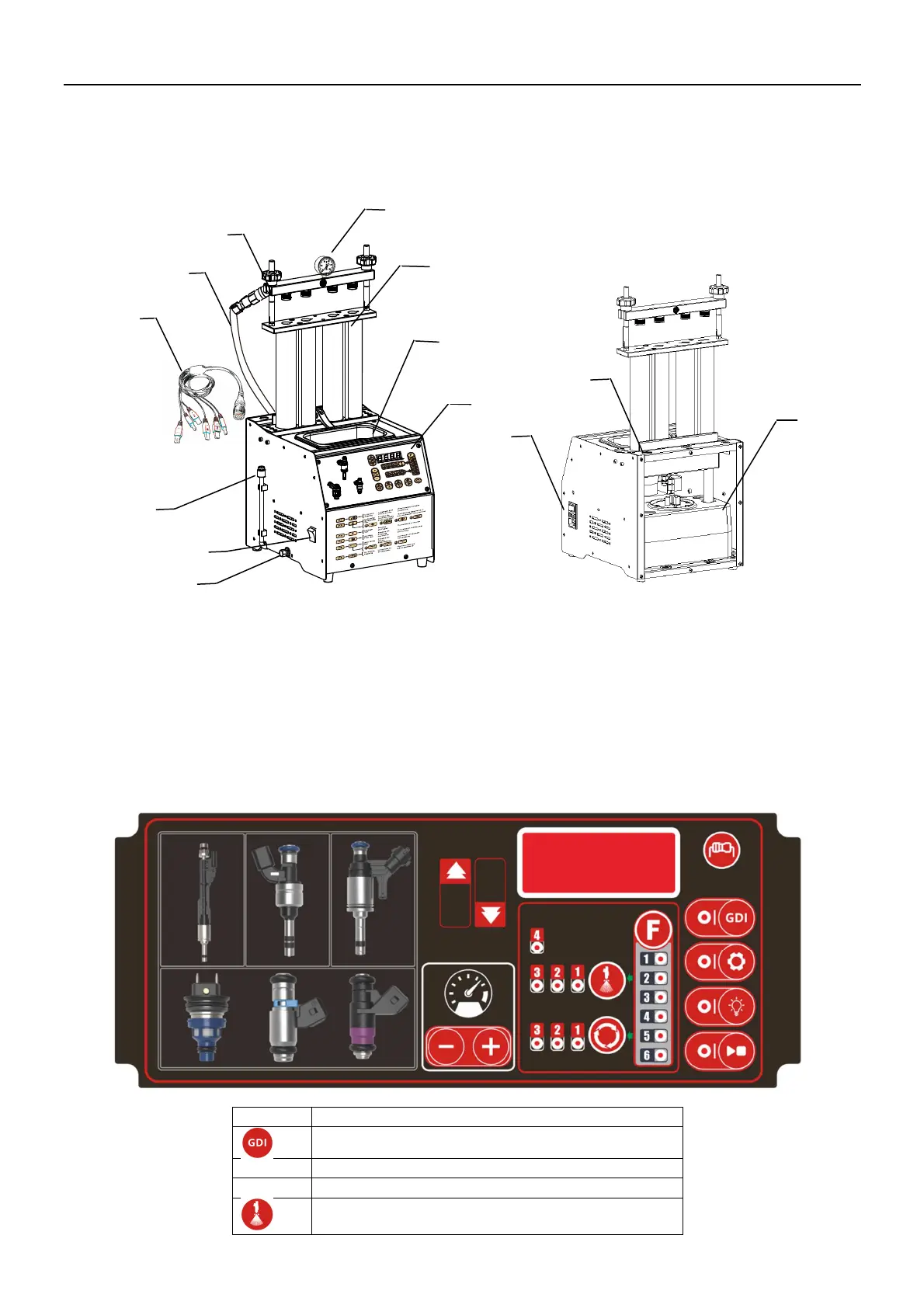 6-Fuel outlet pipe; 7- Ultrasonic cleaner ; 8- Ultrasonic cleaner switch; 9- Liquid level indicator tube (test liquid