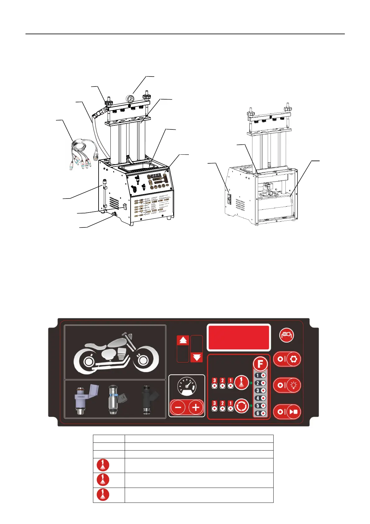 6-Fuel outlet pipe; 7- Ultrasonic cleaner ; 8- Ultrasonic cleaner switch; 9- Liquid level indicator tube (test liquid