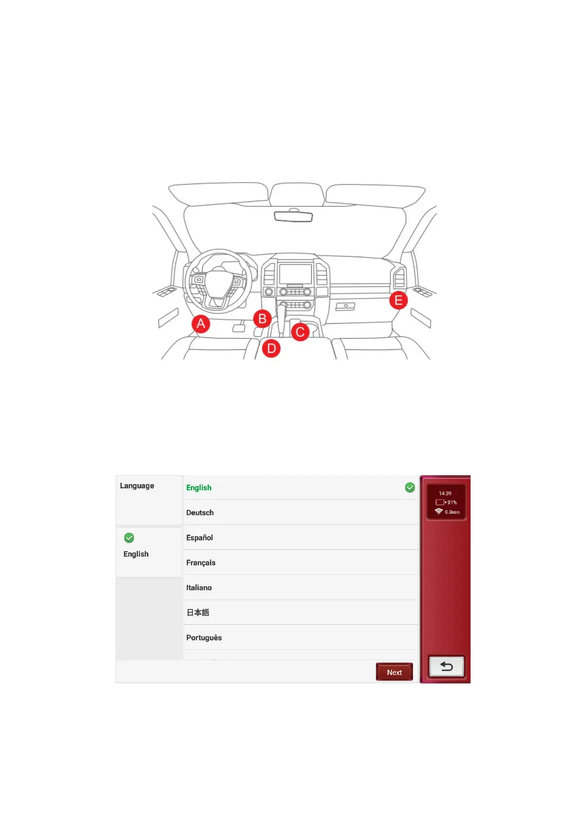 Once the DLC is connected, the device will automatically power on. For first-time use, the first step is to set the