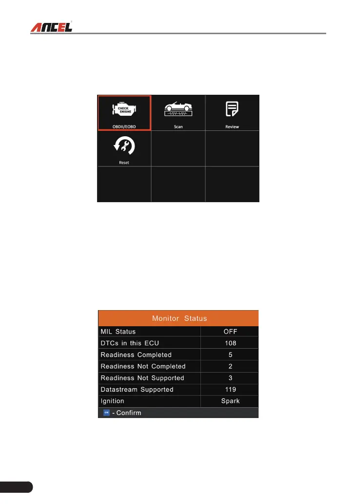 Select [Diagnose] in Main Menu and press [OK], the screen will display Monitor
