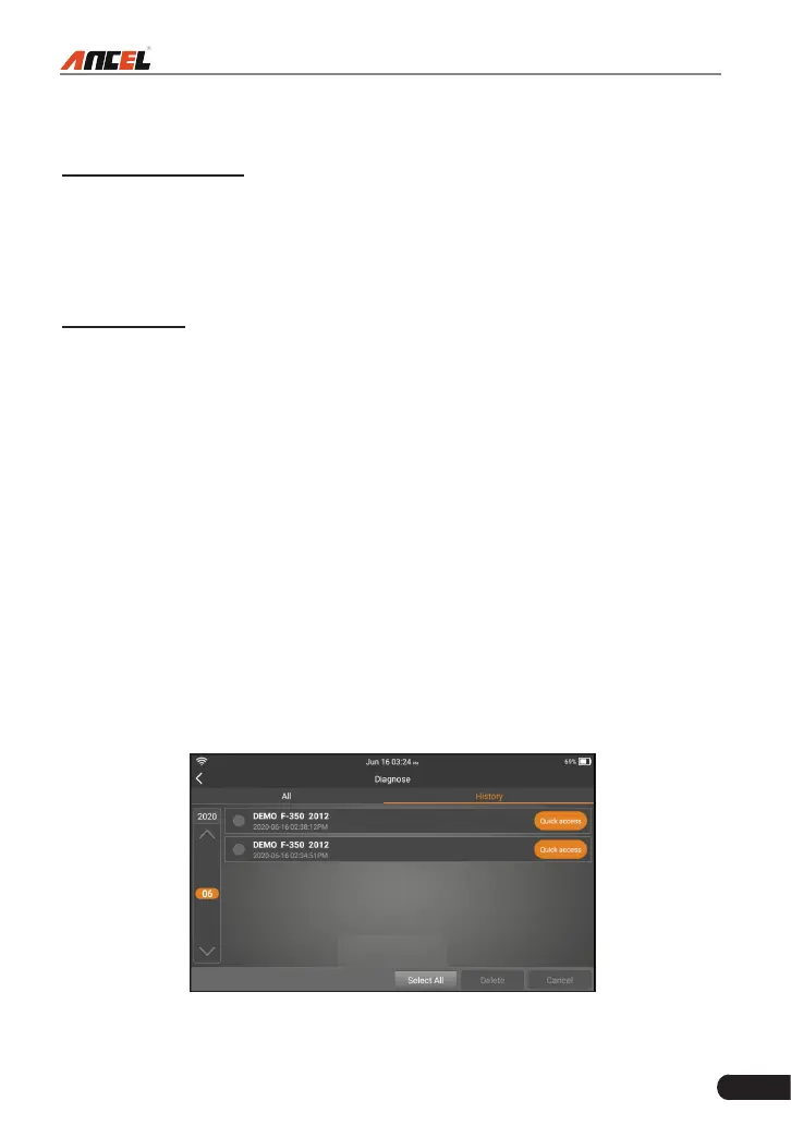 Tap “History” on the Manual Diagnosis main menu screen, all diagnostic records