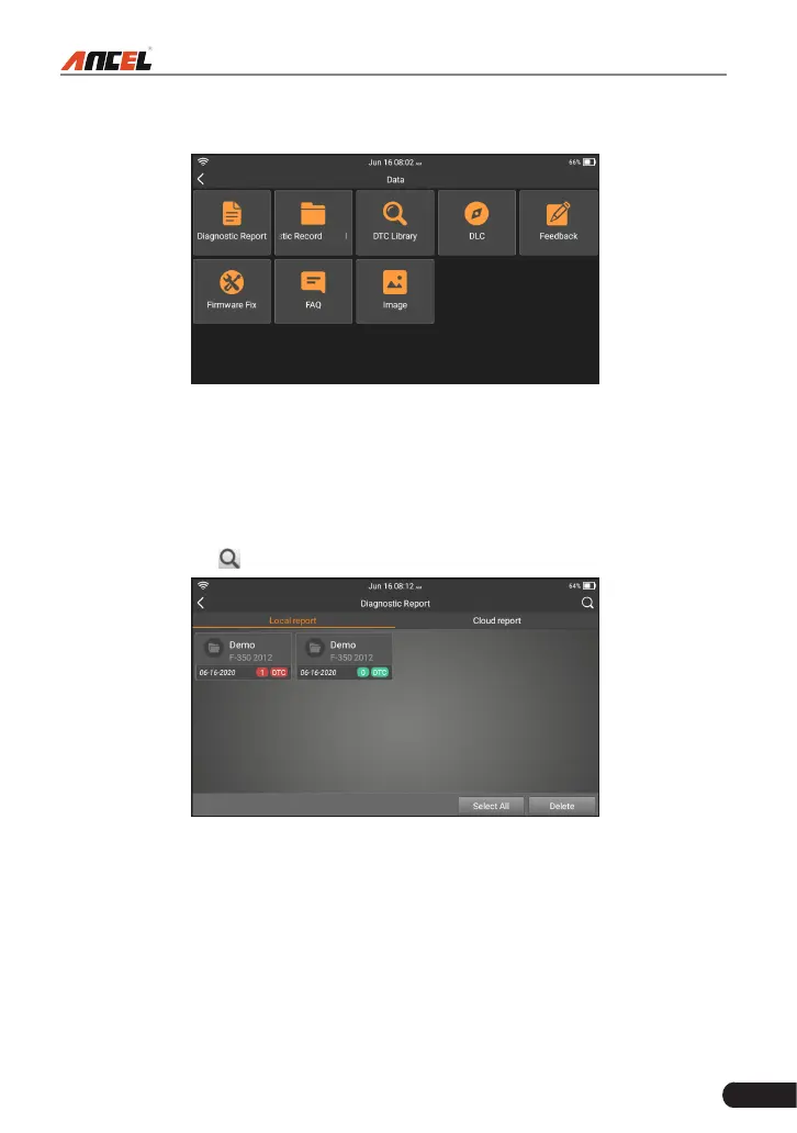All the diagnostic reports are sorted by Date and Make. If there are too many
