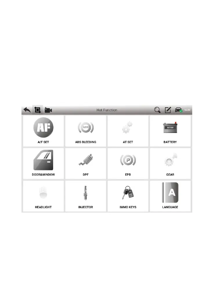Functions: OILREST, ABS BLEEDING, BATTERY, DPF, EPB,