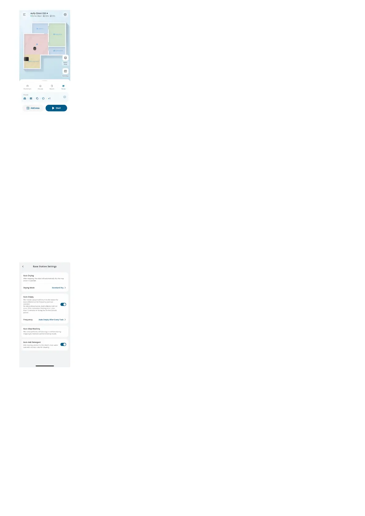 1. Start cleaning. RoboVac will automatically vacuum and mop. During mopping, you can choose between three water levels via the eufy app.