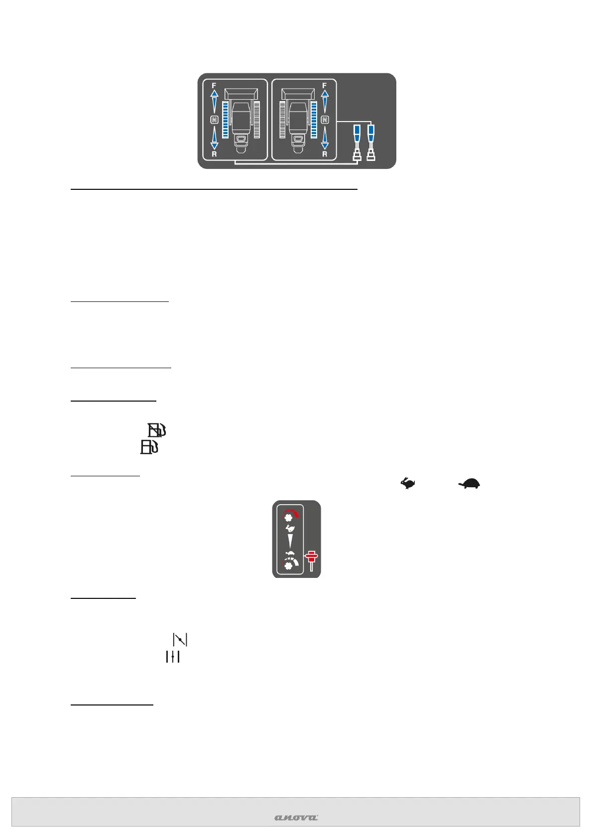 The throttle control regulates engine speed and moves between fast and slow
