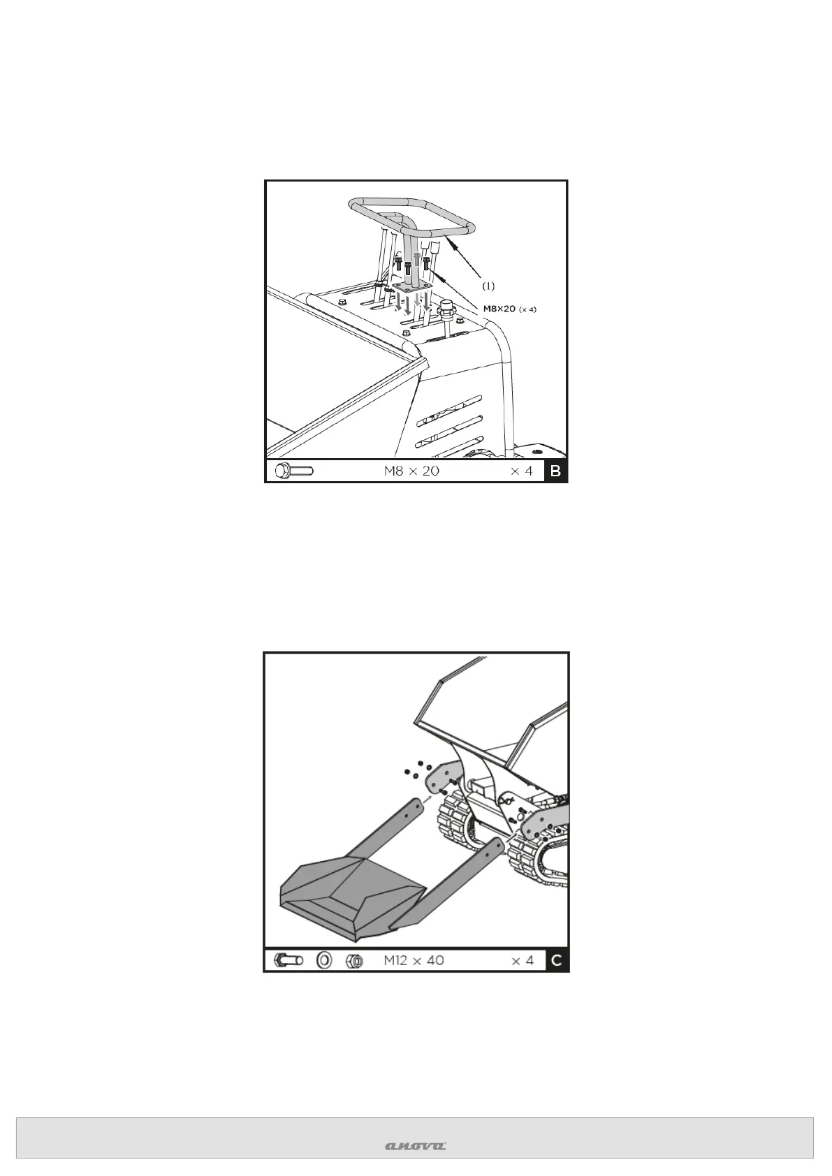 Firmly fix the handlebar in the working position using four M8x20 bolts.