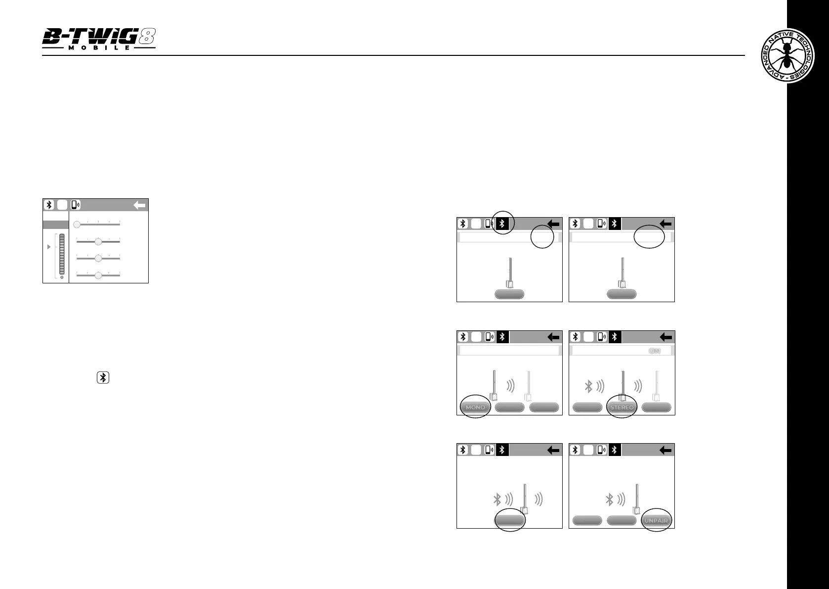 El sistema B-TWIG 8 MOBILE está equipado con un receptor estéreo Bluetooth