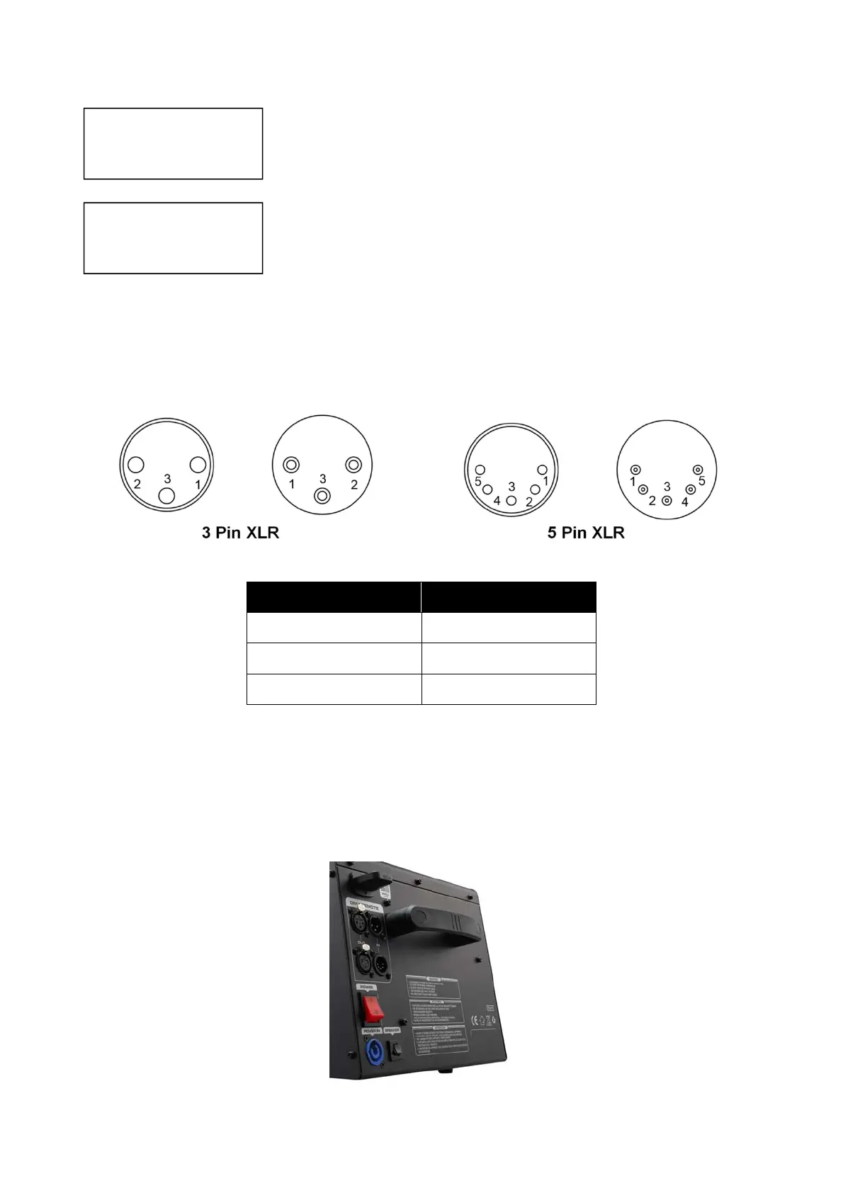 machines in the DMX chain. The machine uses a 3-pin or 5-pin XLR connector for DMX