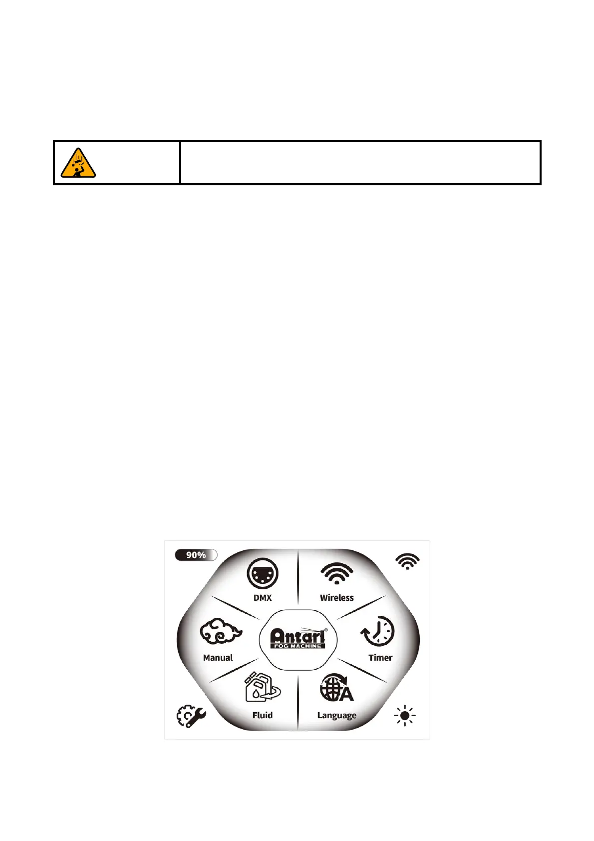 Step 2. Fill the fluid tank with Antari approved fog fluid, and make sure the tube is not twisted;